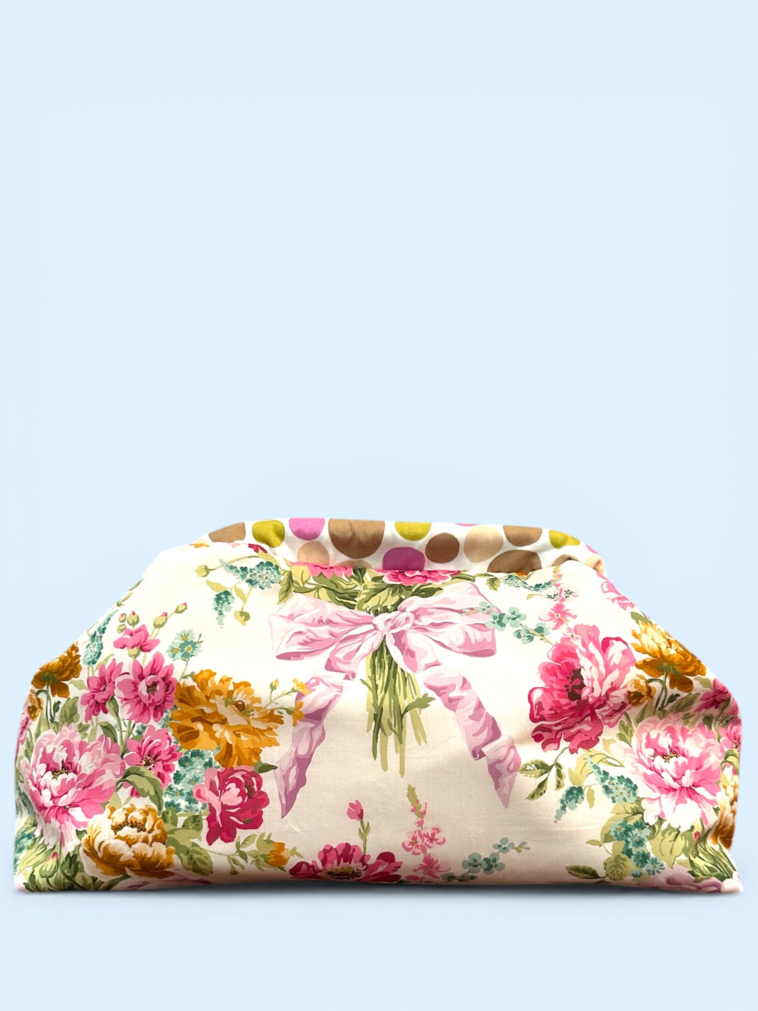 Allegra è una clutch realizzata in cotone Liberty London, una collezione di cotoni ispirata alla serie tv Bridgerton.