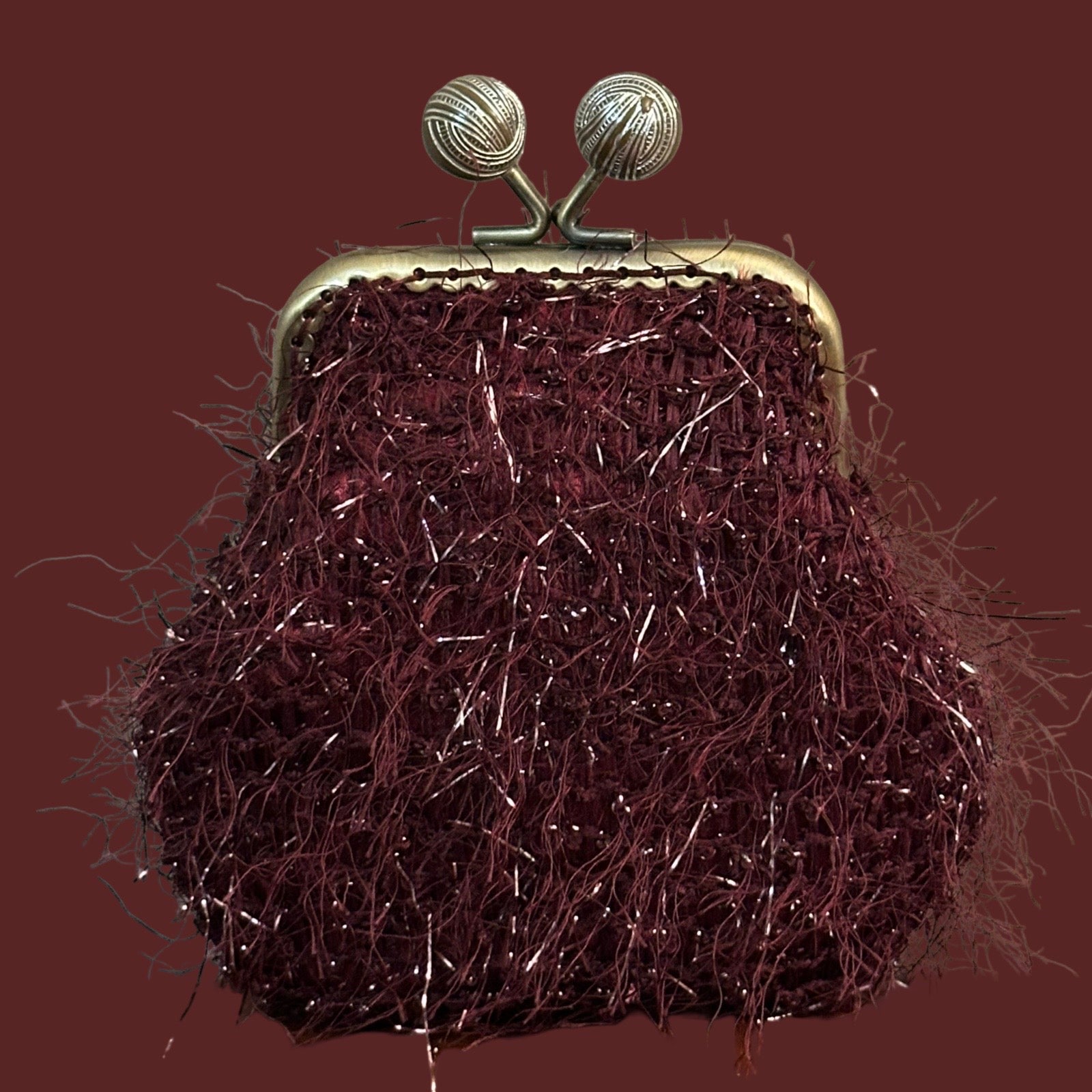 Scrigno realizzato in rete bordeaux e satin.