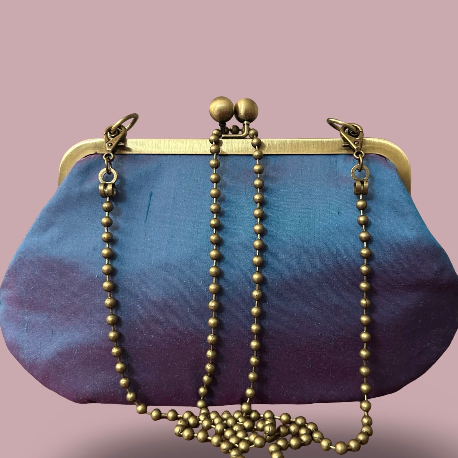 Chiusura a scatto bronzo e tracollina con micro sfere bronzo.