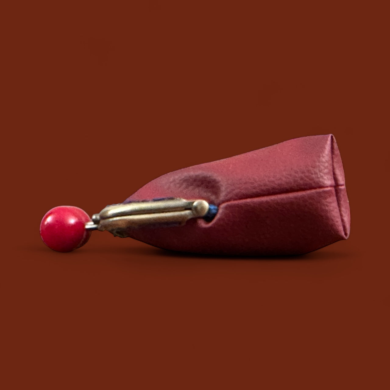 La chiusura è in bronzo con pomoli rossi ed è cucita a mano.