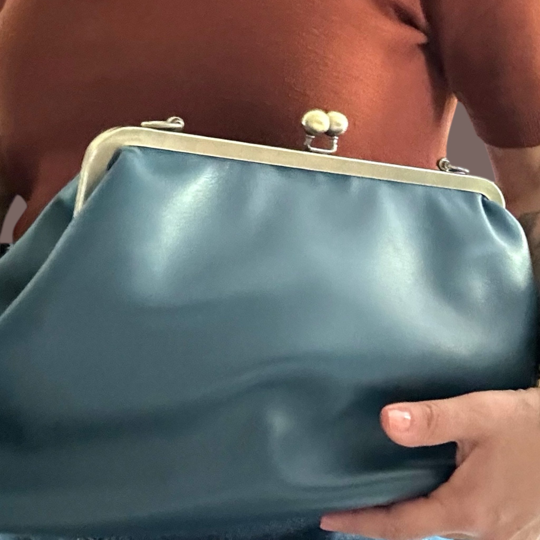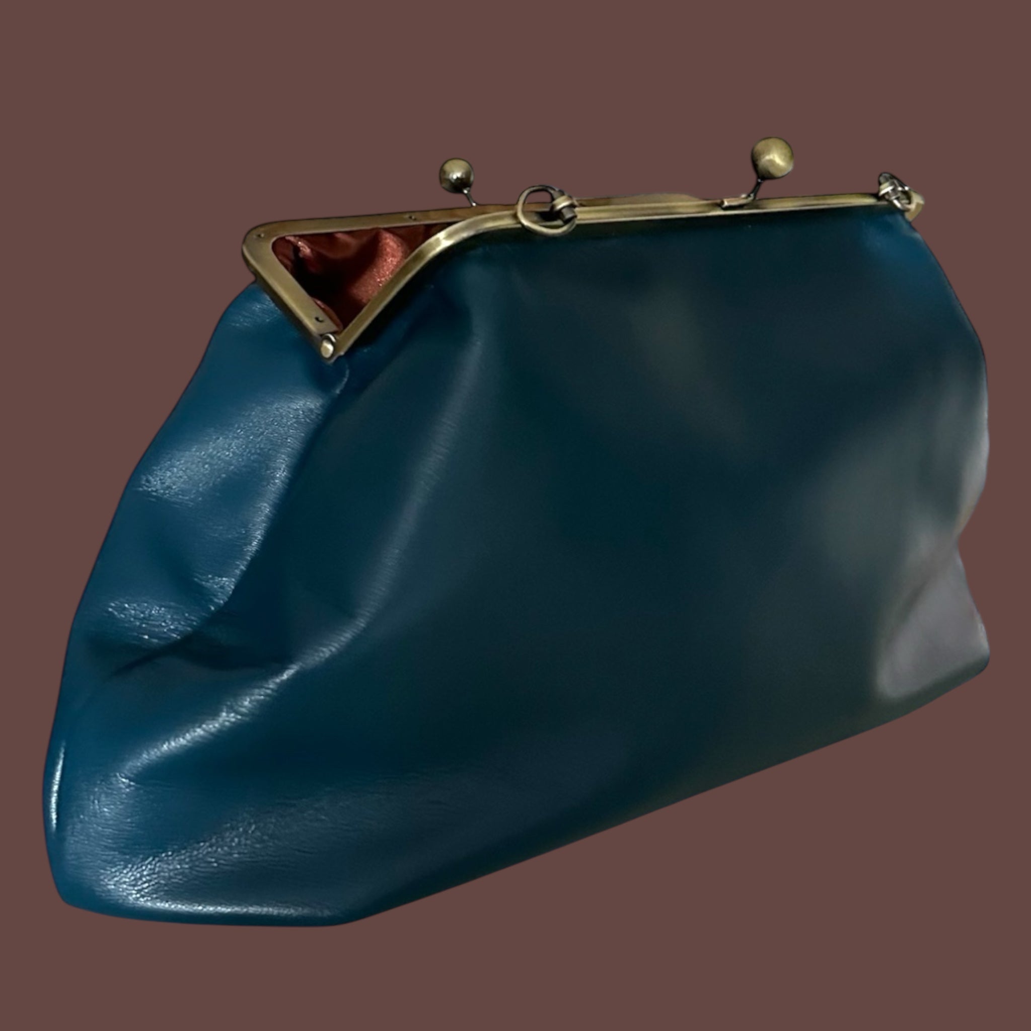 È realizzata in vitello morbidissimo color ottanio.