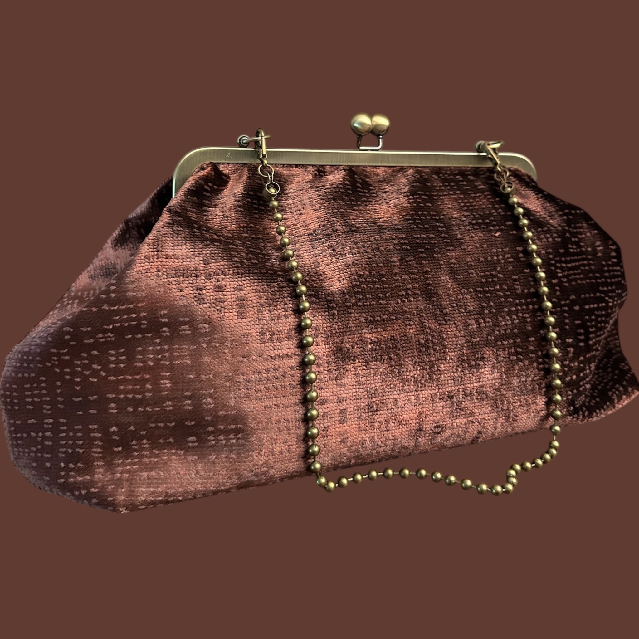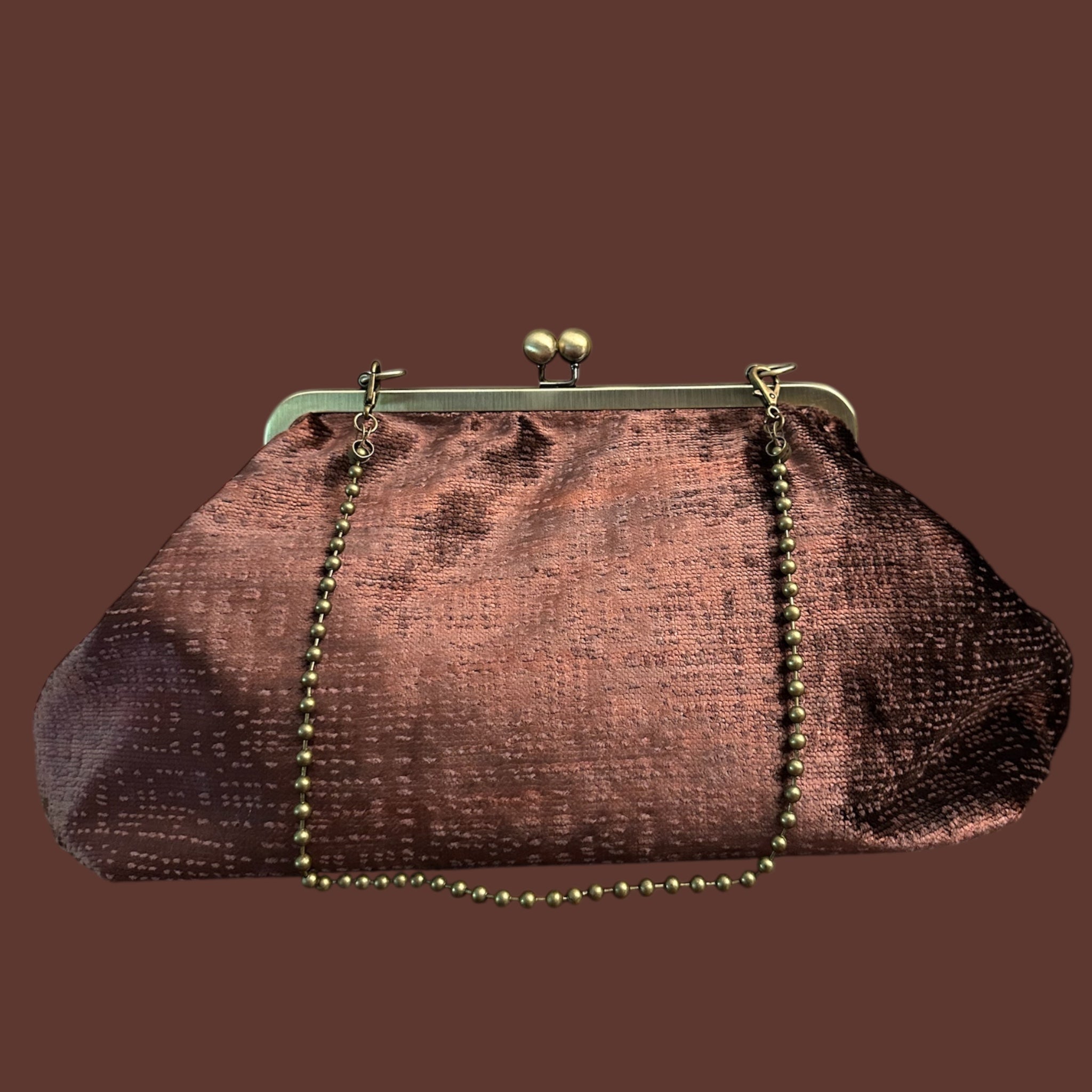 Ofelia è la nuova clutch di grandi dimensioni. È realizzata in velluto di seta rosa antico.